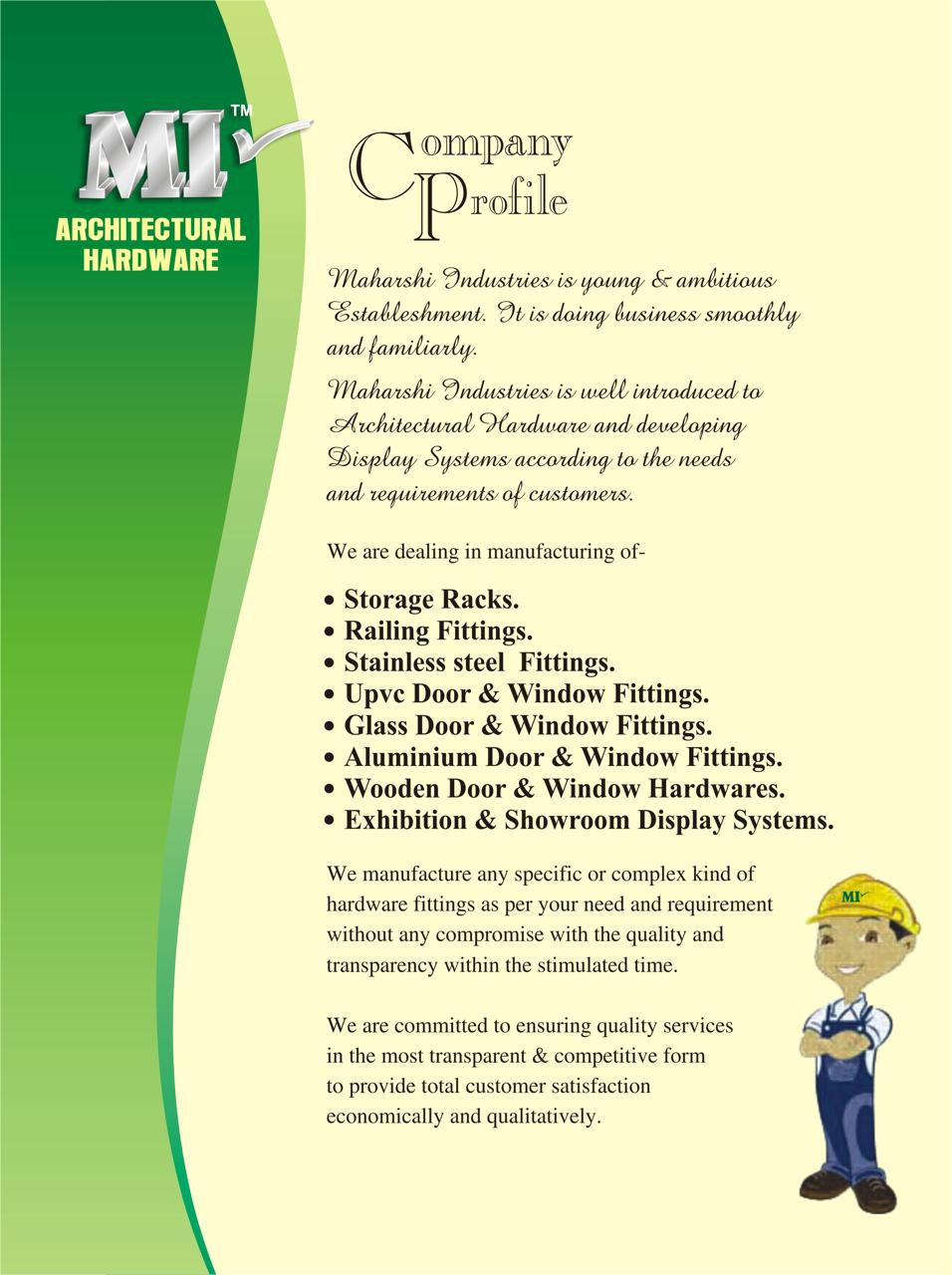 Maharshi Industry is well introduced to Architectural Hardware and developing Display Systems according to the needs and requirements of customers.